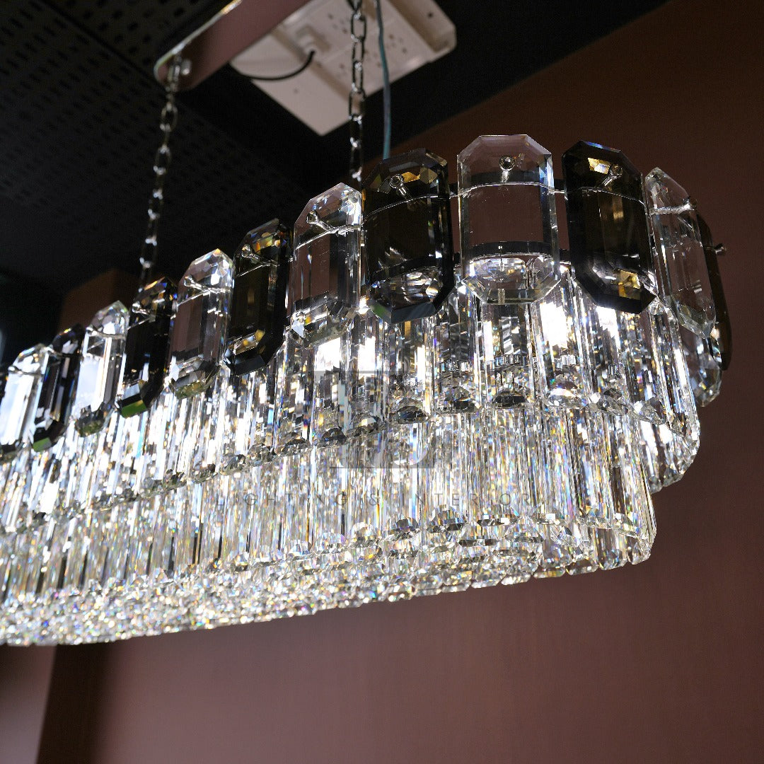 Introducing a statement piece that seamlessly combines modern elegance with a touch of mystique. The polished chrome frame sets the stage for a captivating display, adorned with a combination of clear and smoked crystals.