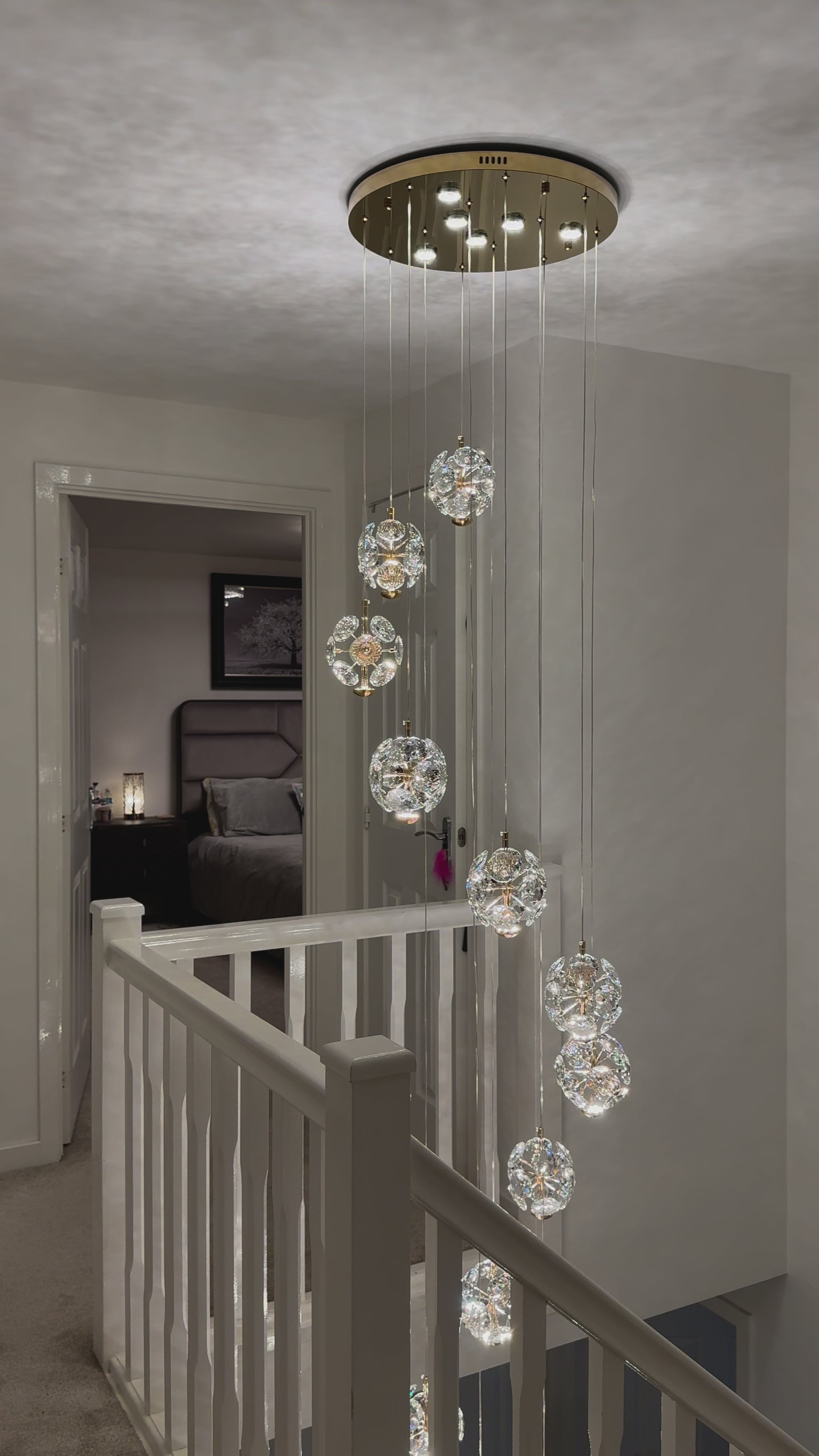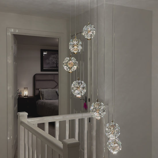 The Florance Chandelier is the perfect option to make a statement in a hallway as it features a polished gold frame that is beautifully surrounded by decorative crystal studs.
