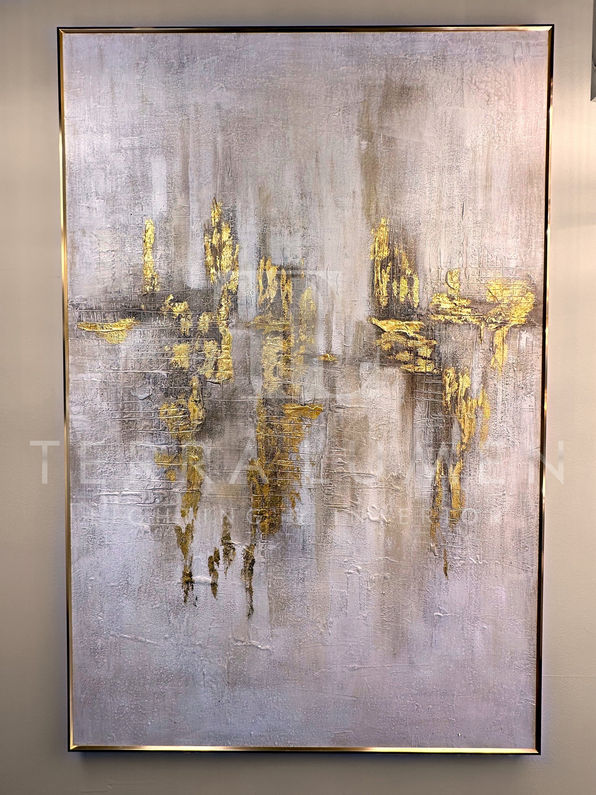 Our Celeste abstract painting transcends traditional boundaries, offering a visual experience that blends sophistication with luxury. The harmonious union of greys and golds creates a balanced and captivating atmosphere, where subtlety meets extravagance, and each viewing unveils new layers of beauty and contemplation. Each painting has been individually hand painted, making each one unique.