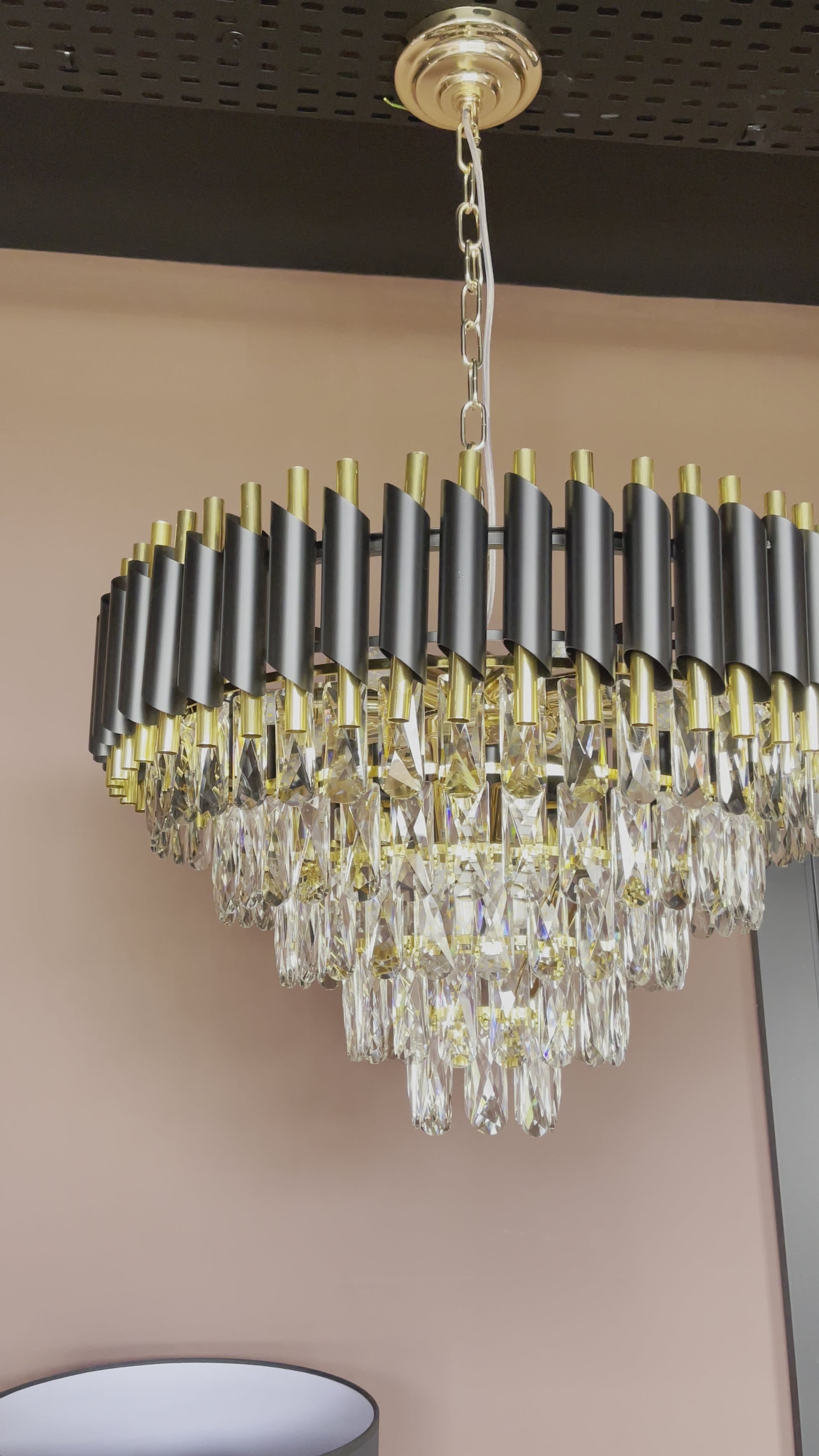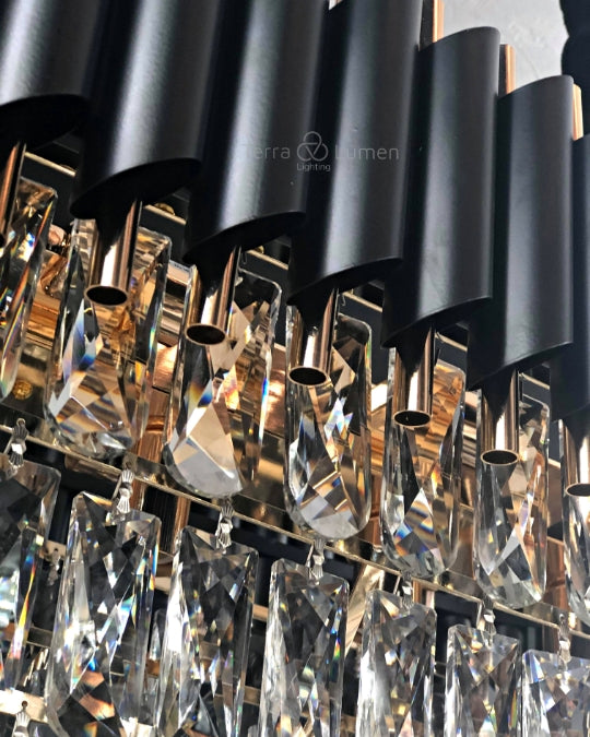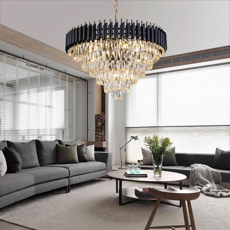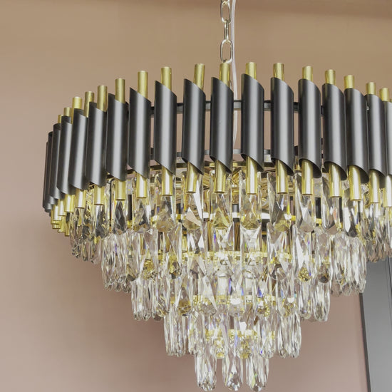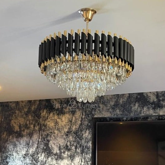 The Juniper Round is a stunning Chandelier. This is an ideal addition for a Living Room. Add a touch of elegance with our Juniper Round. Featuring a gold frame with black details which is perfect for adding character to any living room.