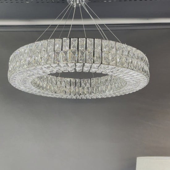 Modern Large LED Crystal Ring Ceiling Hanging Light | Easy Fit