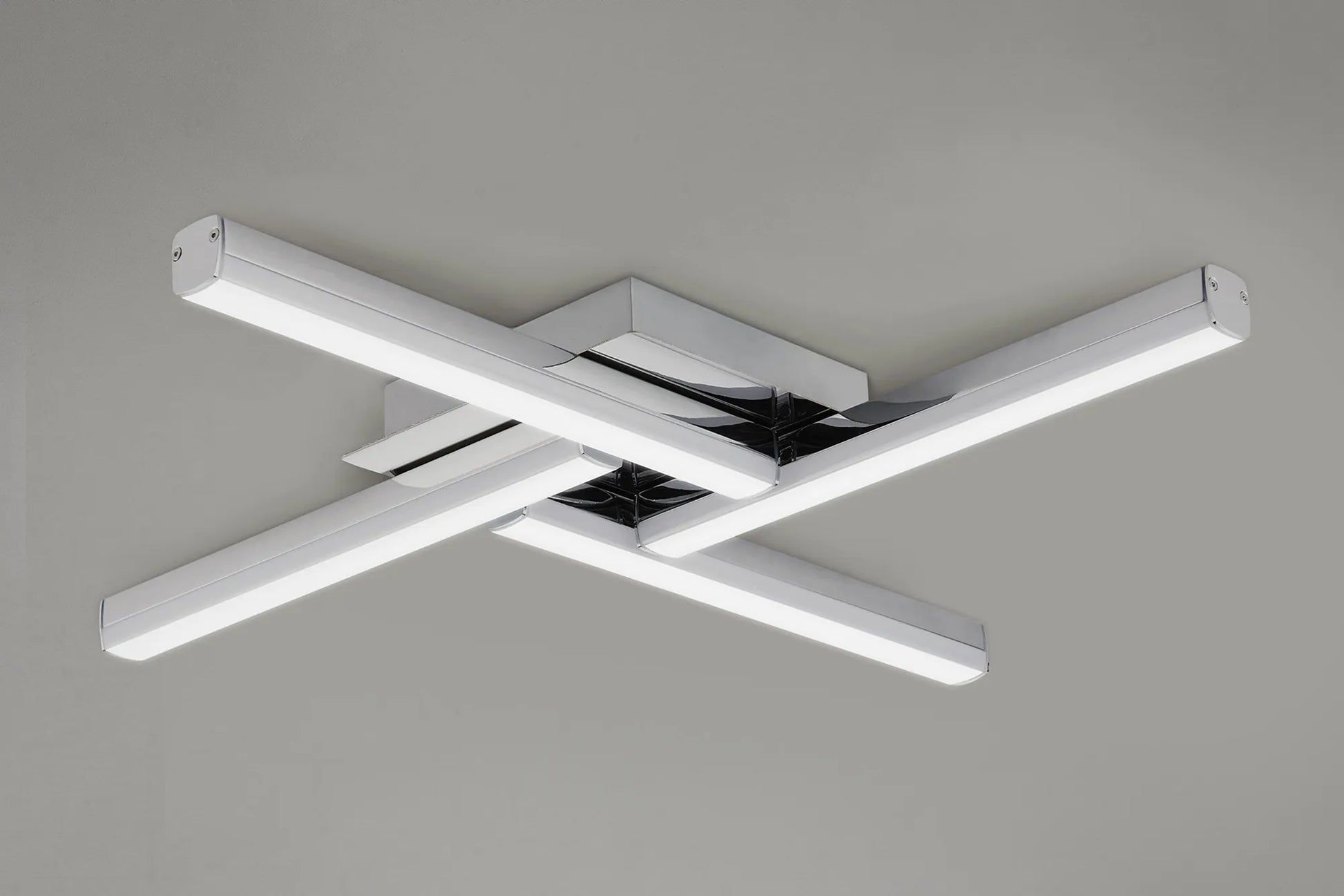 The Wisp ceiling light is sleek and modern in design with an ambient light distribution being emitted from the integral Neutral light LEDs. The polished chrome, sand black or brass framework coupled with the opal white rectangular diffusers form a reliable IP44 rated range.